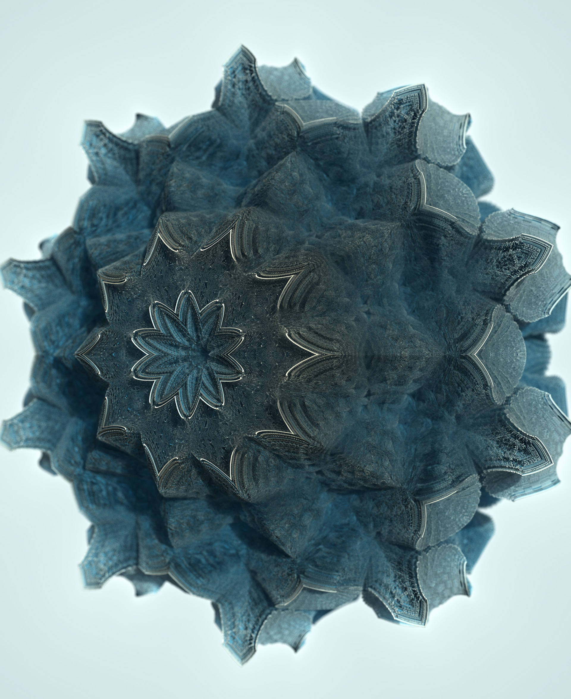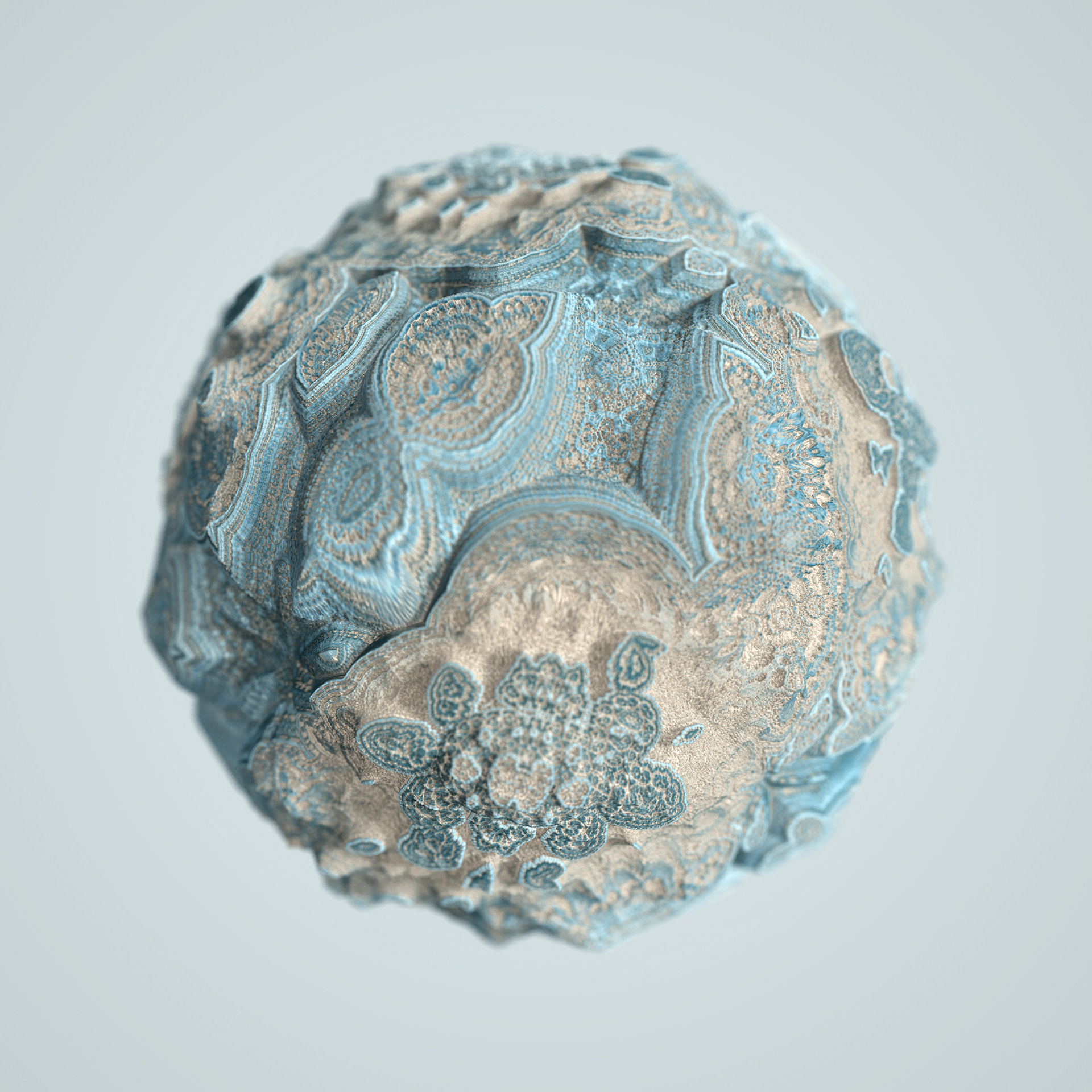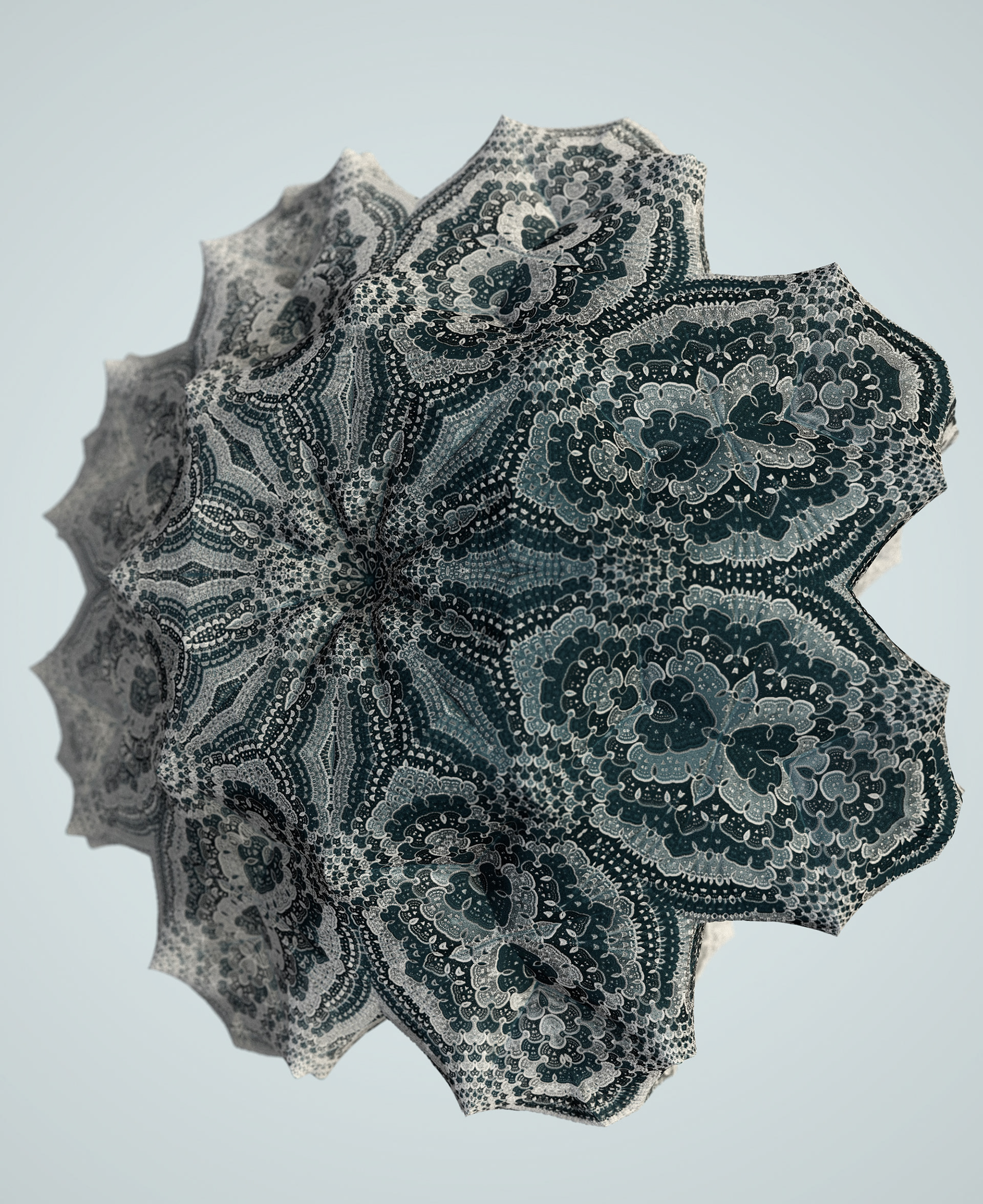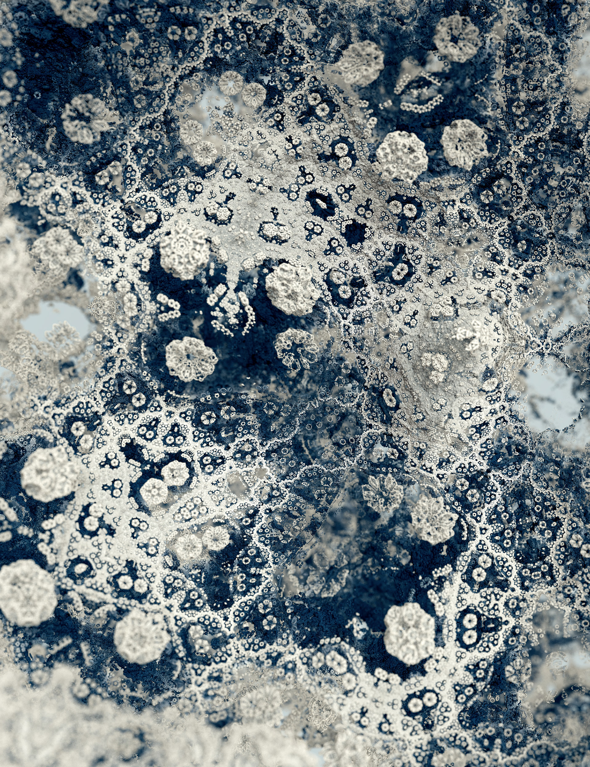 The Floating Points video was created to illustrate the song of the same name by composer Zero Gr4vity. Created entirely in computer code (C++ and GLSL), the animation explores the world of 3D fractals, in particular Kaleidoscopic IFS. Somewhere between abstraction and generative art, the images created tend towards organic and sometimes floral aesthetics. While each form is born of the abstraction of equations, we can nonetheless see and recognise an aesthetic that is reminiscent of biological or marine scientific iconography. It is in this direction that the clip takes shape, revealing an entirely fictitious macroscopic bestiary. In the tradition of the botanical plates of Ernst Haeckel (1834-1919), the viewer can discover a collection of cellular organisms and phytoplankton revealed through the prism of an algorithm diverted from its original function.