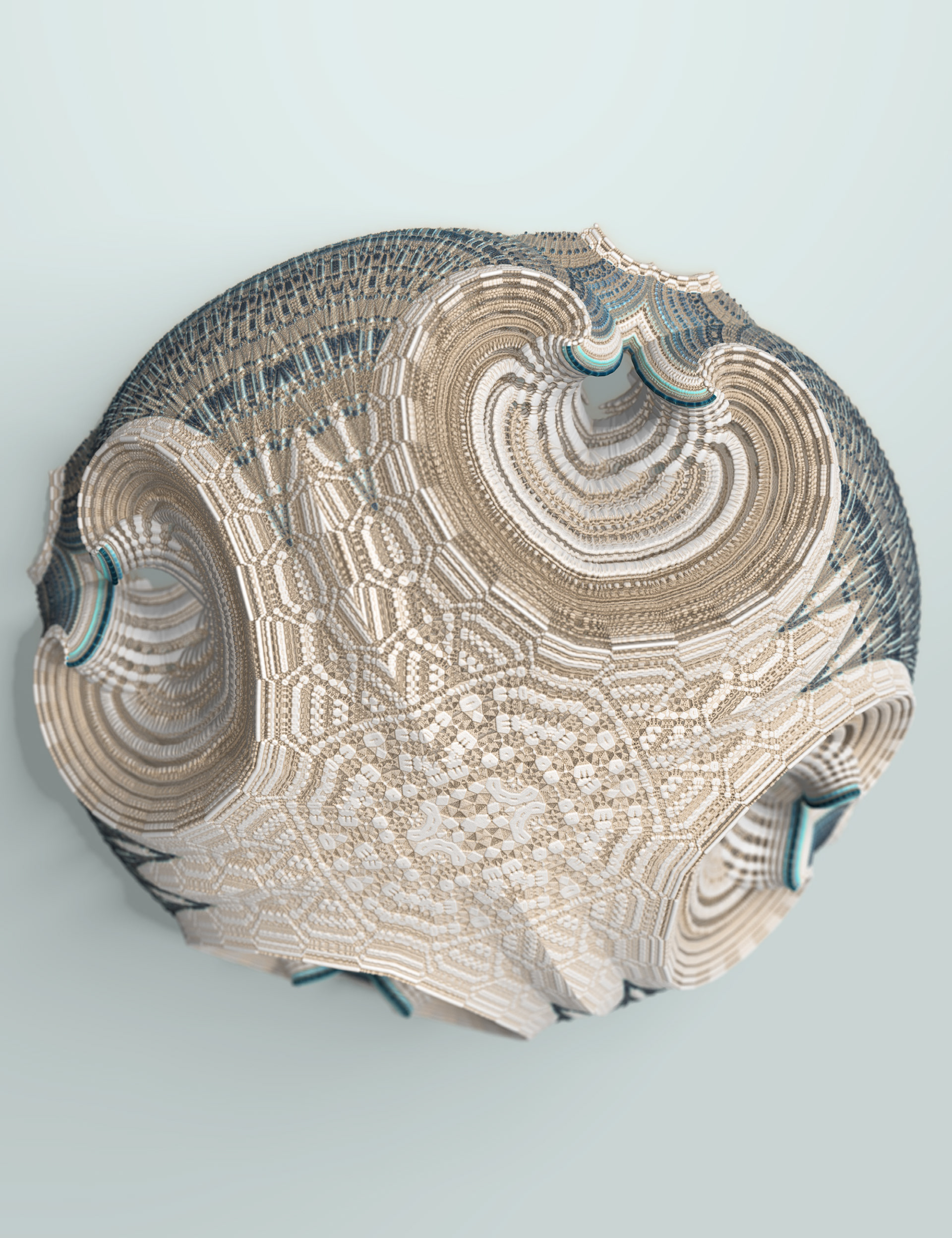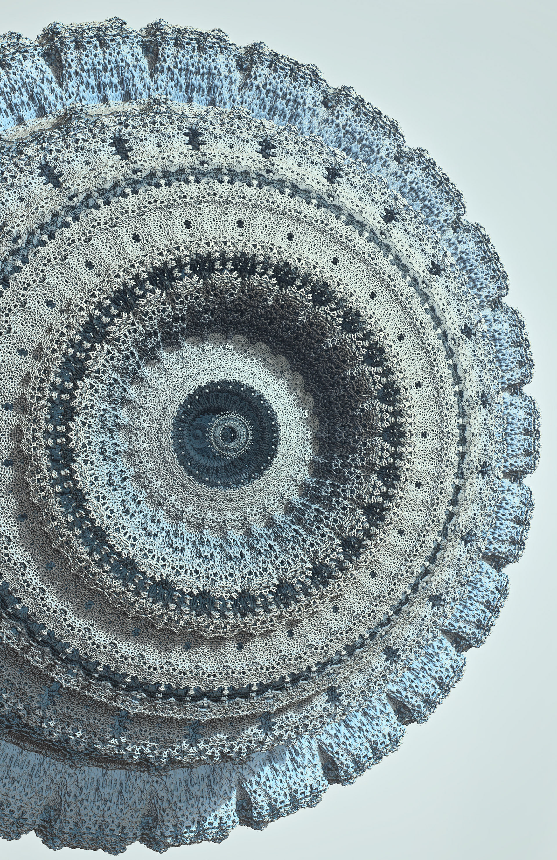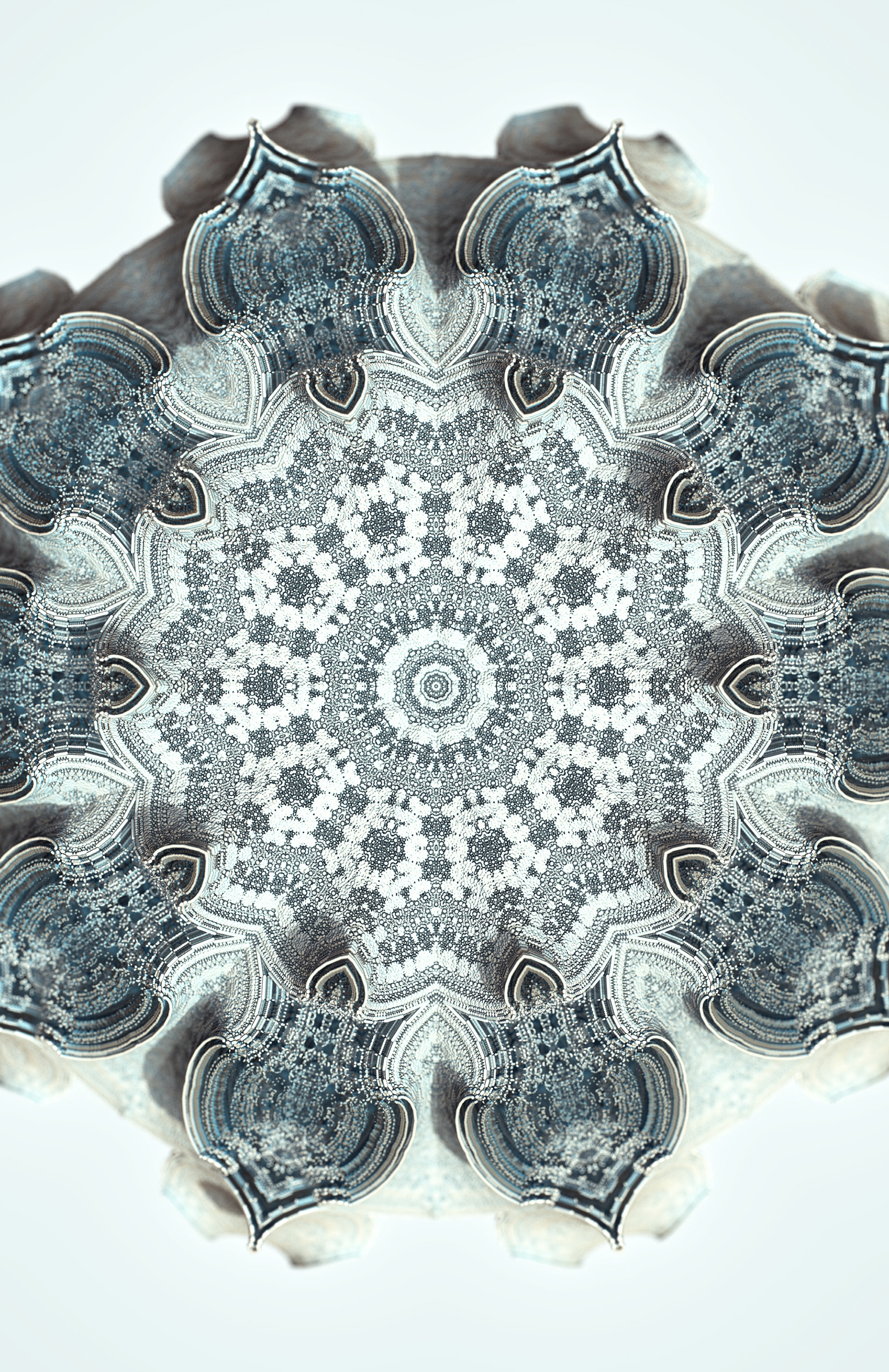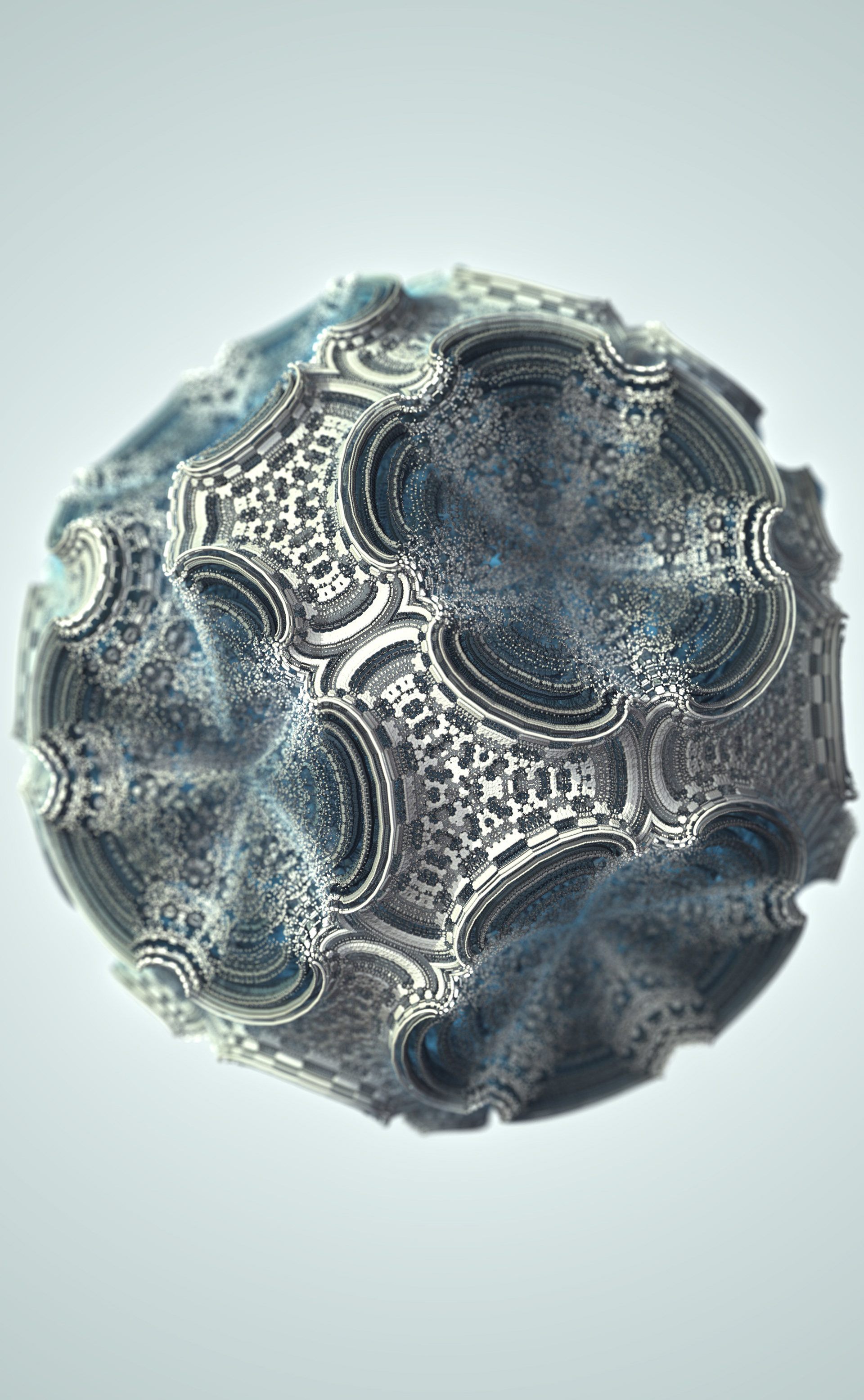 The Floating Points video was created to illustrate the song of the same name by composer Zero Gr4vity. Created entirely in computer code (C++ and GLSL), the animation explores the world of 3D fractals, in particular Kaleidoscopic IFS. Somewhere between abstraction and generative art, the images created tend towards organic and sometimes floral aesthetics. While each form is born of the abstraction of equations, we can nonetheless see and recognise an aesthetic that is reminiscent of biological or marine scientific iconography. It is in this direction that the clip takes shape, revealing an entirely fictitious macroscopic bestiary. In the tradition of the botanical plates of Ernst Haeckel (1834-1919), the viewer can discover a collection of cellular organisms and phytoplankton revealed through the prism of an algorithm diverted from its original function.