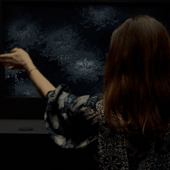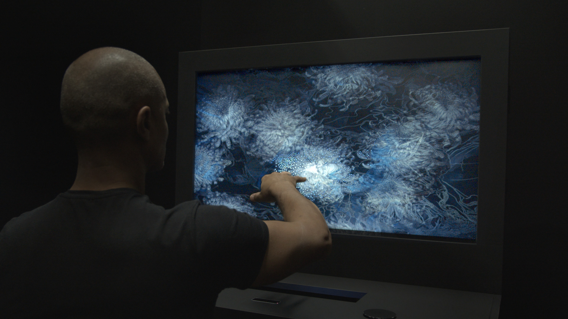 Perfumes utilise les principes et la technique du video mapping exploités sur une impression représentant des chrysanthèmes. Elles sont augmentées par une animation interactive matérialisant l’essence des parfums qui s’échappent de la fleur.