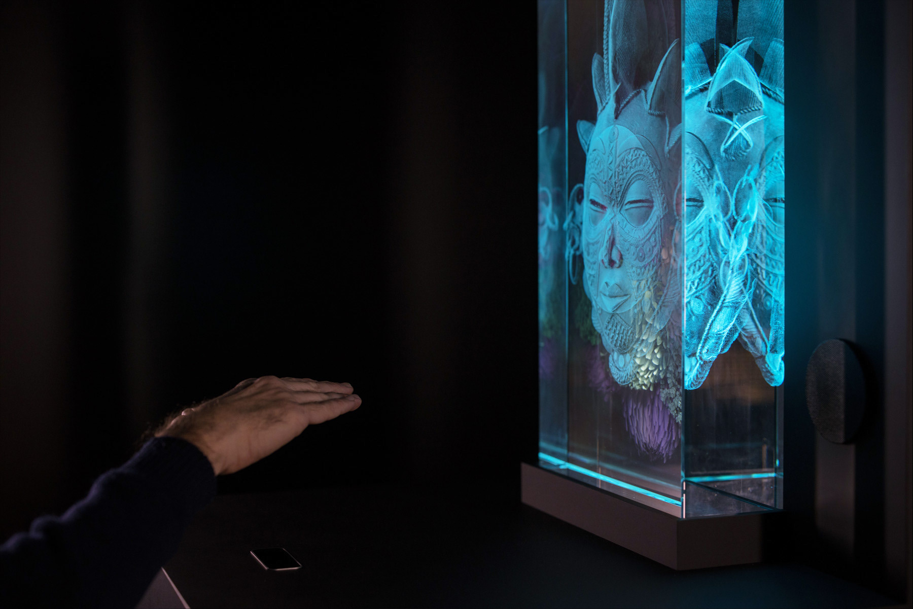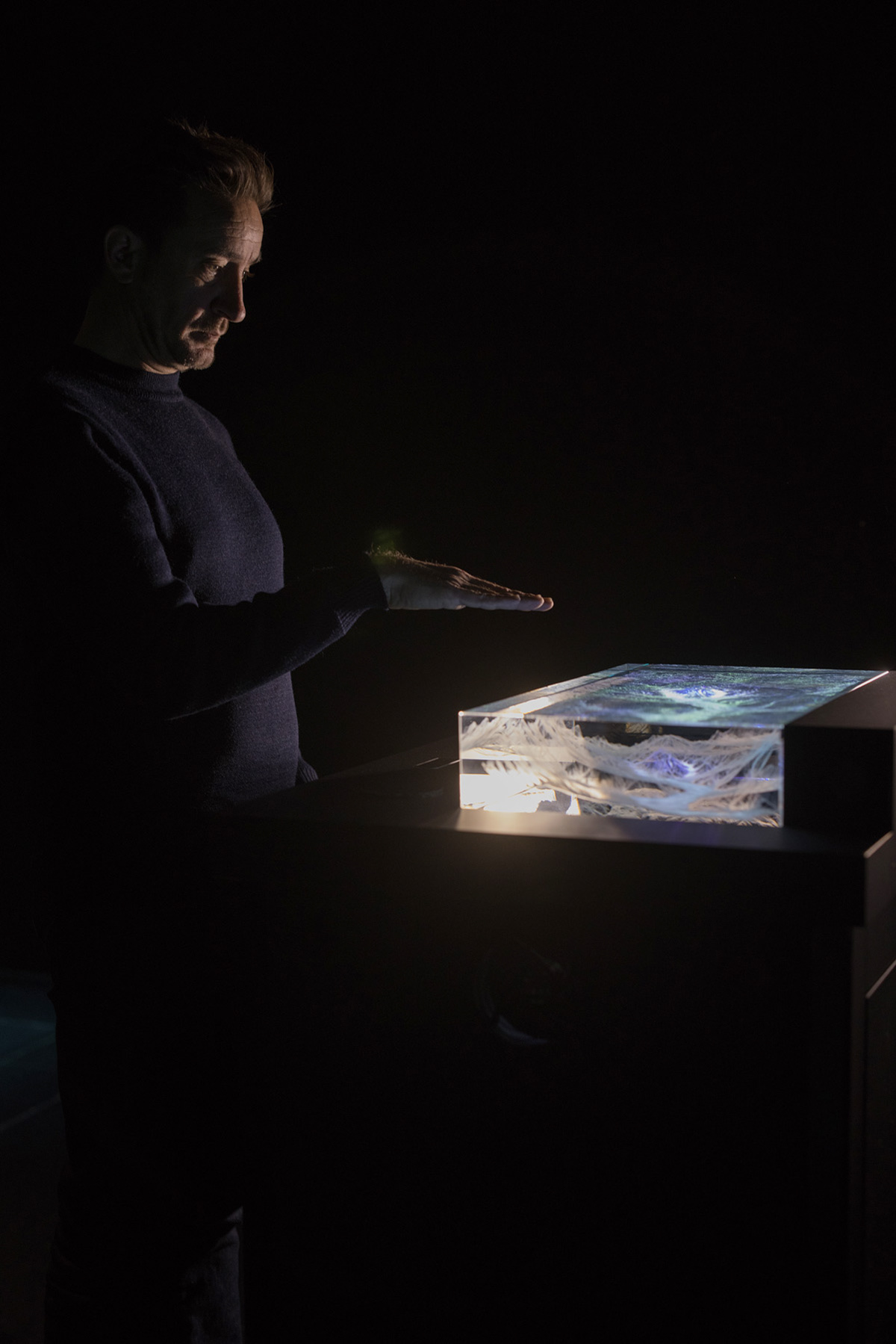 The PRISM project is a continuation of the interactive exhibition Les Mécaniques poétiques conceived a few years ago by Yann Nguema. Acknowledged on the international architectural projection scene, here he is leaving urban space to return to more intimate creations on a human scale. With this new project, the artist explores the use of new media in the creation of innovative digital works, such as crystal, sand, stone, silk... The ten or so installations, most of which are interactive, take us into a unique laboratory where projections, code, sculpture, kinetics, algorithms and stereography all come together to create atypical and timeless works. The use of light and materials, with their intrinsic optical and physical properties, completes the highly personal aesthetic that has been the artist's trademark for many years. As usual, the highly technological aspect of the exhibition disappears in favour of a hypnotic, contemplative poetry lulled by the music of Zéro Gr4vity (EZ3kiel).