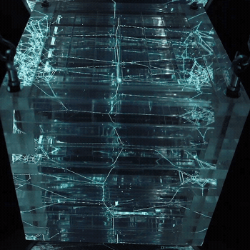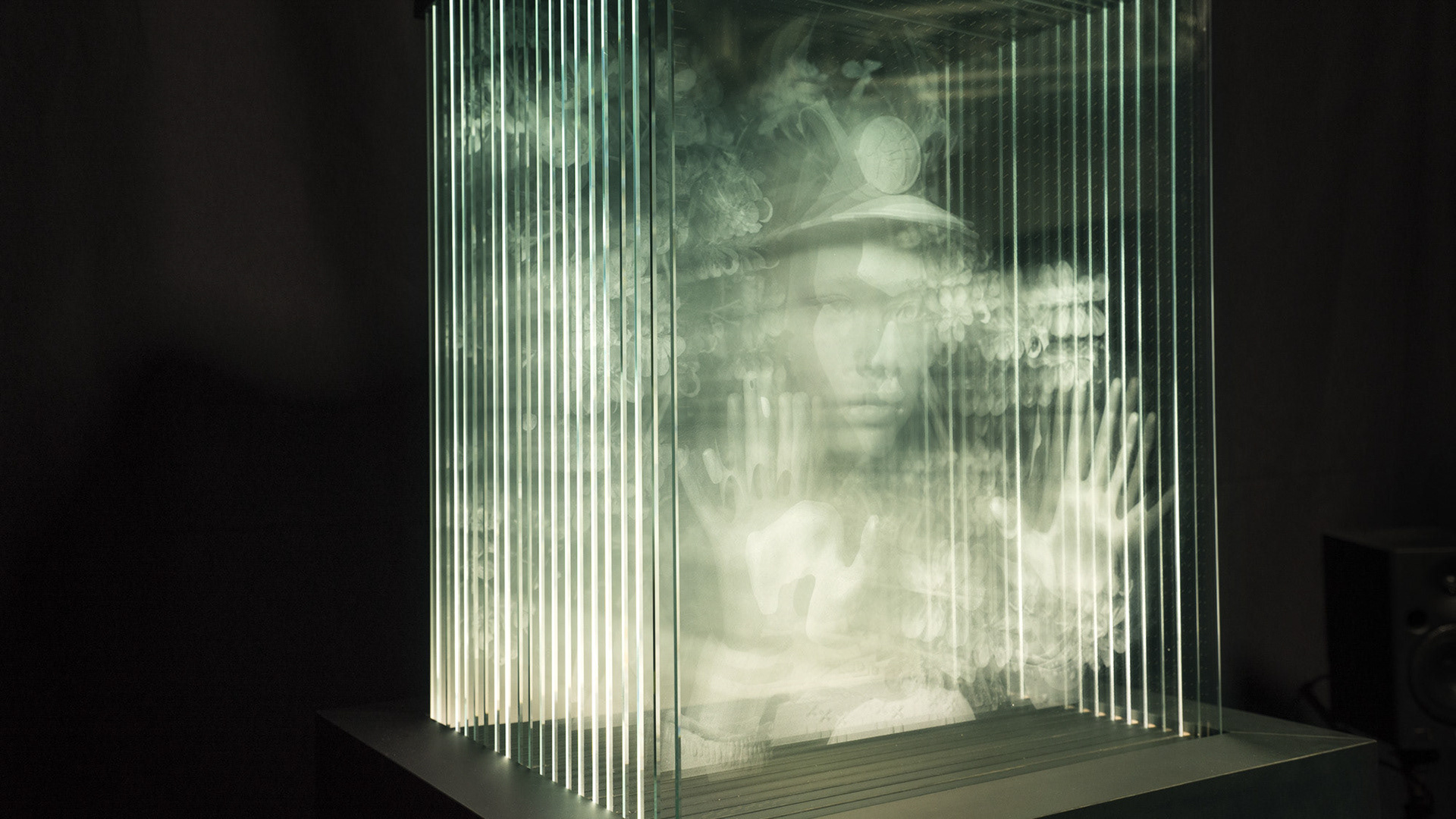 Le projet Alta, associe projection et gravure laser dans un bloc de verre. La densité des points de la gravure est exploitée à son maximum pour permettre de projeter une image dessus.